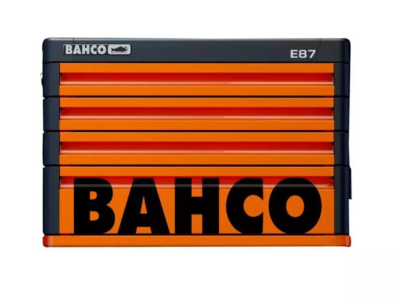 Bahco 1487K4 Premium E87 Storage HUB Top Chest with 4 Drawers and the DAAT-system, this ensures that only one drawer can open at a time. The fully opening drawers have individual shock-protecting corner bumpers for defending against unexpected collisions.