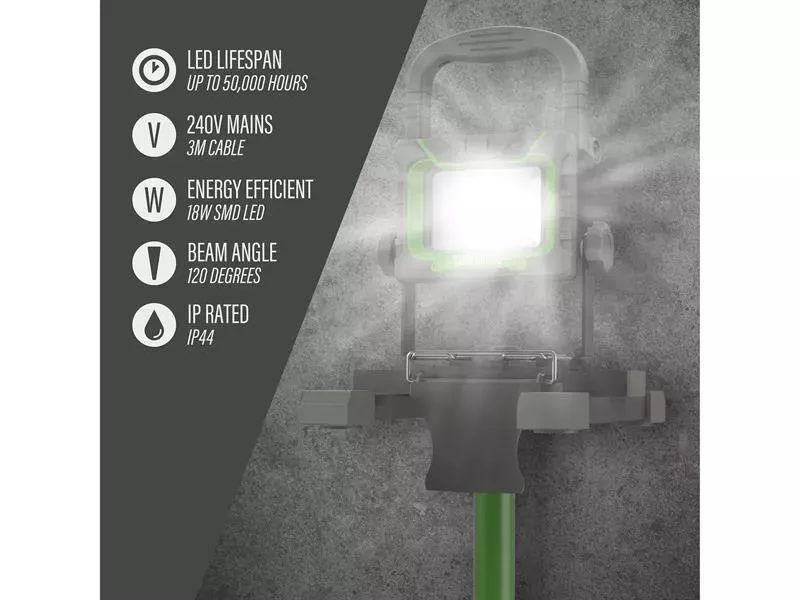The Lighthouse Single Site Light is designed to provide powerful and reliable illumination for various work environments. This site light features an 18W SMD LED light capable of delivering a brightness of 2000 lumens with a 6500k colour temperature.