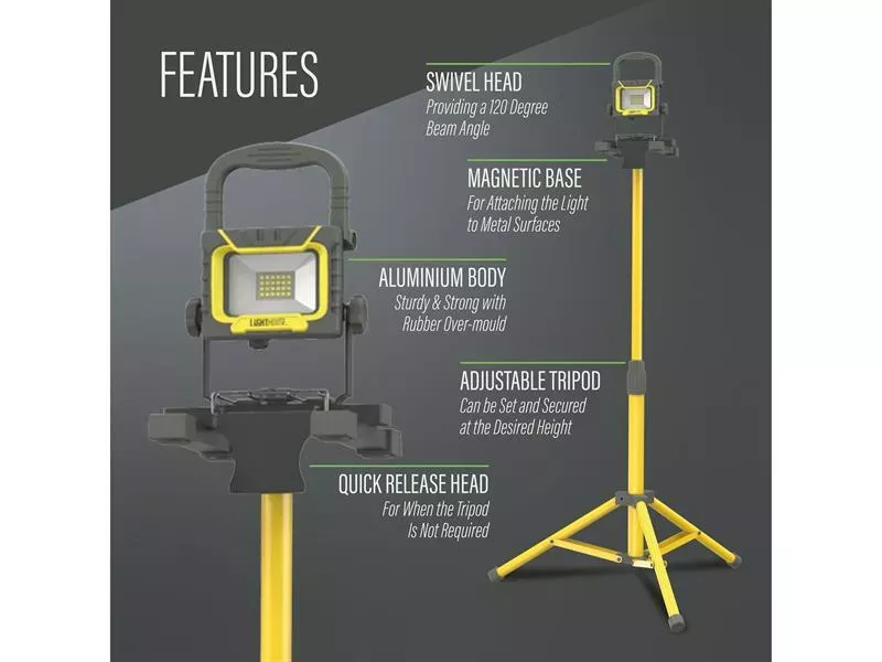 The Lighthouse Single Site Light is designed to provide powerful and reliable illumination for various work environments. This site light features an 18W SMD LED light capable of delivering a brightness of 2000 lumens with a 6500k colour temperature.