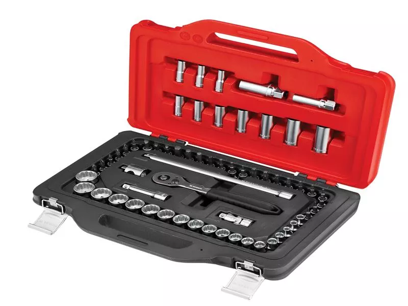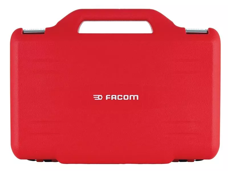 62 Piece JL.151-EP62PB Facom 3/8in Drive Socket Set in TWIN BOX case. The integrated ergonomic handle ensures easy and comfortable transport, both in the workshop and on the go. Made from highly resistant, textured plastic with sturdy metal latches. Contents: