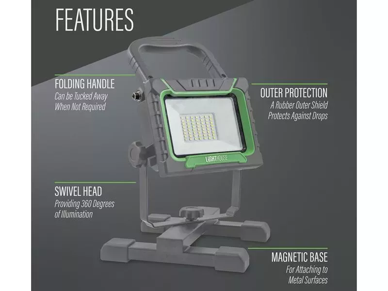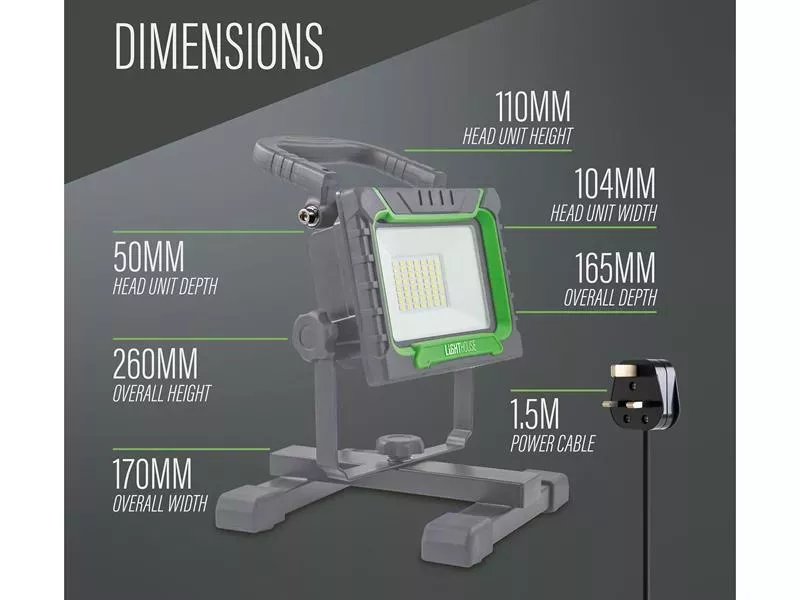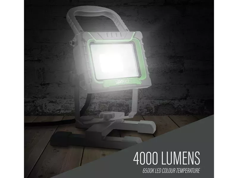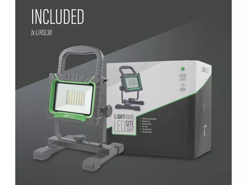 The Lighthouse Site Light is designed to provide powerful and reliable illumination for various work environments. This site light features a 38W single SMD LED head capable of delivering a brightness of 4000 lumens with a 6500k colour temperature.