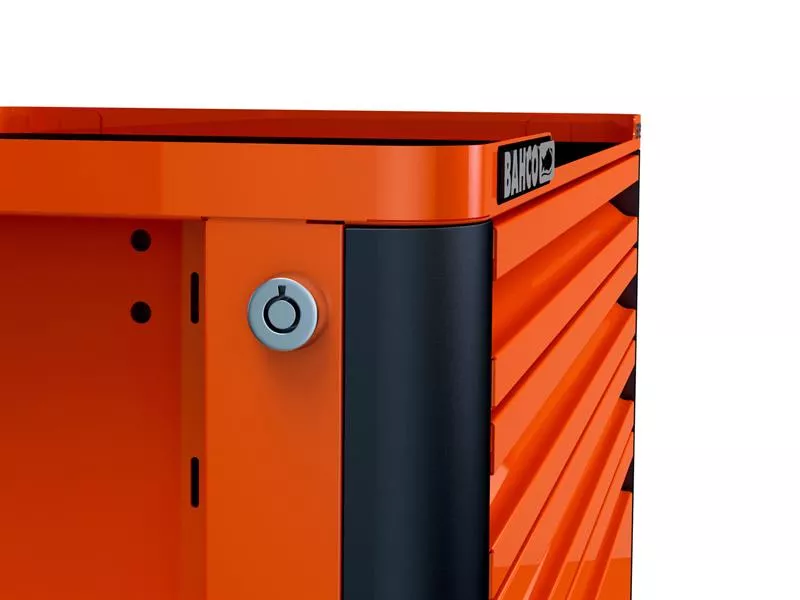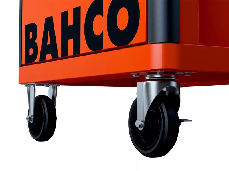 The Bahco 1472K5 E72 Storage HUB Tool Trolley has 5 fully opening drawers, equipped with ball-bearing sliders that glide very smoothly and have a capacity up to 30kg. It has a solid steel, dual-walled case construction. The dual-walled case ensures that the drawers always open after a collision damages the outside wall. Shock protecting corner bumpers minimise the chance of injuries and damage to surrounding objects.