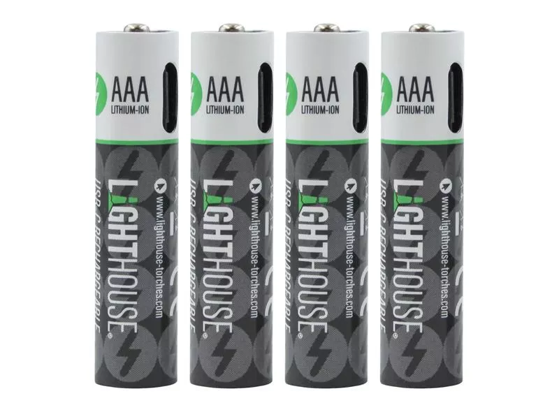 Pack of 4 Lighthouse AAA USB-C Rechargeable Li-ion Batteries