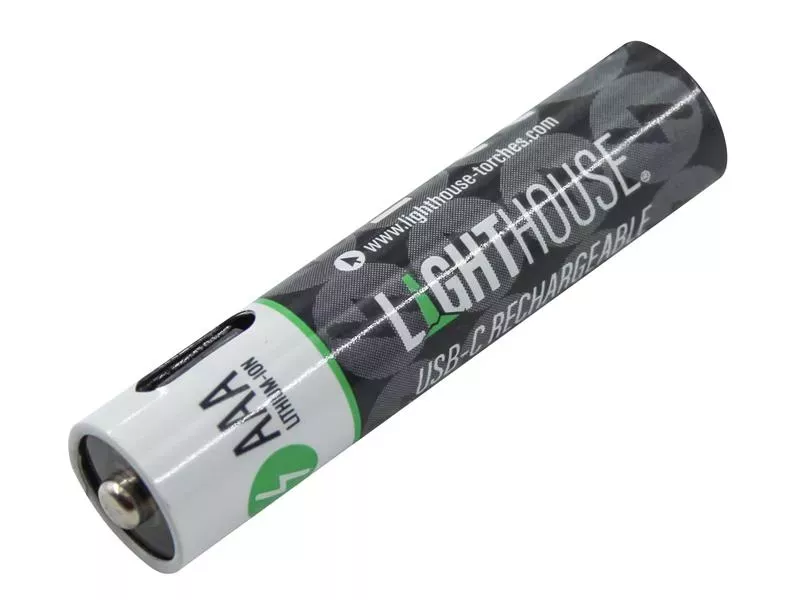 The Lighthouse AAA USB-C Recharge Battery is designed to provide reliable and efficient power for a variety of devices. This pack includes four AAA batteries, each capable of up to 1200 charge cycles, making them a cost-effective and eco-friendly alternative to disposable batteries.