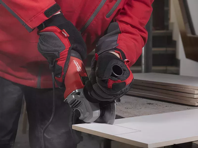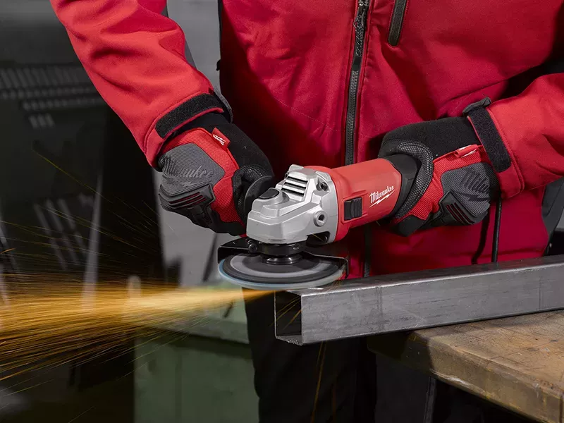 The Milwaukee AG800E 115mm Grinder has a very compact and slim body grip design for comfortable handling. The line lock out function prevents automatic start up after power breakdown. Durable steel gears for long life and protected air inlets for improved cooling.