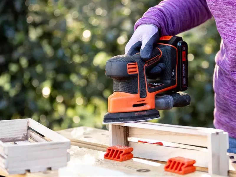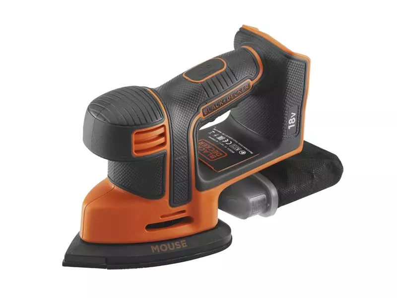 The BLACK + DECKER BDCDS18 Mouse® Detail Sander has a lightweight, compact and ergonomic design that enables you to sand the most intricate and uneven spaces with complete control and comfort. Its replaceable finger tip can reach into tight spaces.