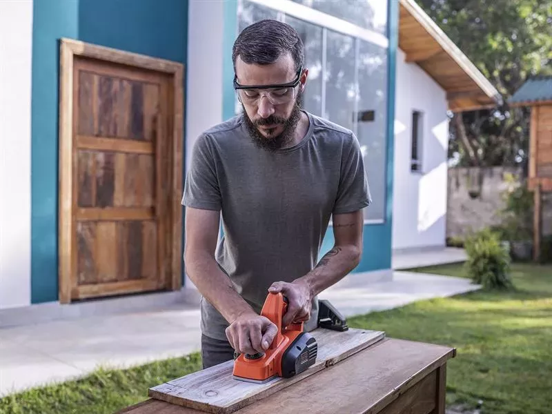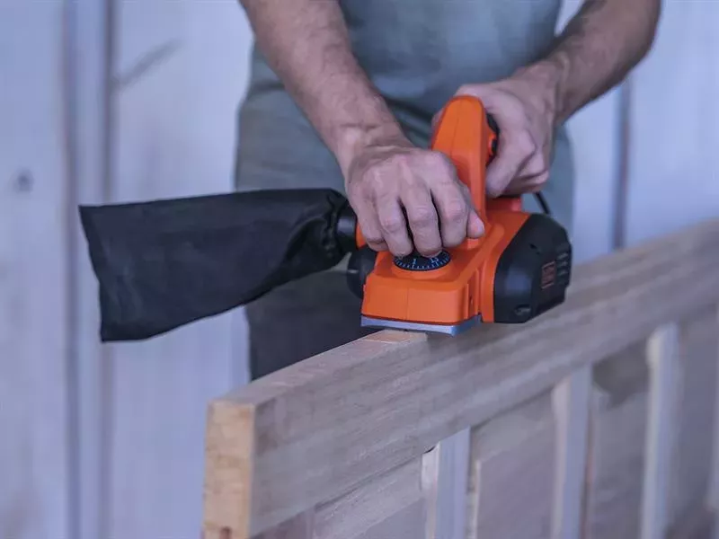 The BLACK + DECKER BEW712 Planer performs a wide variety of woodworking tasks, including smoothing, levelling, rebating, and chamfering. The dust extraction adaptor helps to keep the working environment clean, while the compact size and comfort grip make the planer more comfortable in use, even in tight spaces.