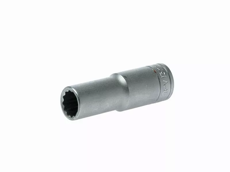 A professional bi-hexagon 1/2in Square Drive deep socket produced in accordance with ISO 900 and AS954 specifications for increased torque and reduced risk of rounding fasteners. Manufactured from chrome vanadium steel with a satin finish.