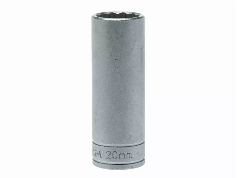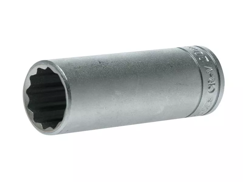 A professional bi-hexagon 1/2in Square Drive deep socket produced in accordance with ISO 900 and AS954 specifications for increased torque and reduced risk of rounding fasteners. Manufactured from chrome vanadium steel with a satin finish.