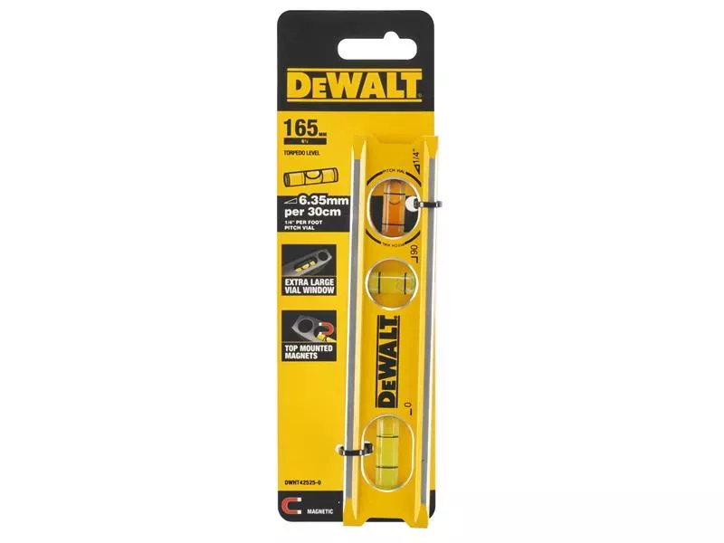 The DEWALT® Billet Level is unbeatable for use in tight, confined places on the job site. Machined from an extruded aluminum, this level offers ultimate durability. Additional vial windows on the top and bottom allow for fast and accurate readings at any angle. Highly accurate 1cm per 30cm pitch vial.