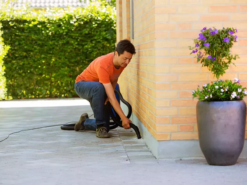 The Buddy II has a useful blow function that provides another option for cleaning. Its two big wheels at the back and two rotation wheels in front make the machine very stable and easy to move around. A built in accessory holder provides storage for accessories so they are always at hand.