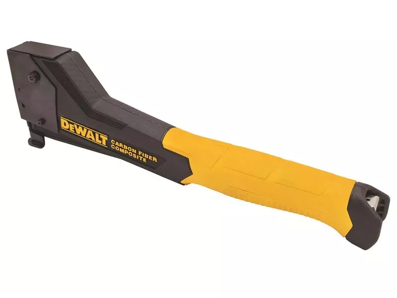 The DEWALT® Carbon Fibre Composite Hammer Tacker features a lightweight carbon fibre composite structure. The reduction in overall weight and vibration allows you to work longer with less muscle exertion. Autolock, anti-jam and a pinch latch provide reliability and ease of use. Fitted with an ergonomic, vibration absorbing grip for improved comfort during prolonged use. The hammer style design provides comfort and ease of use.