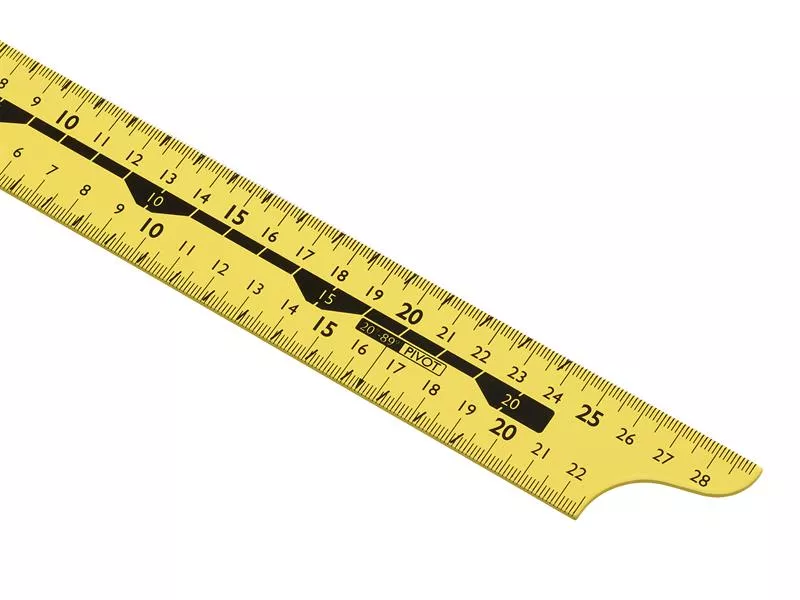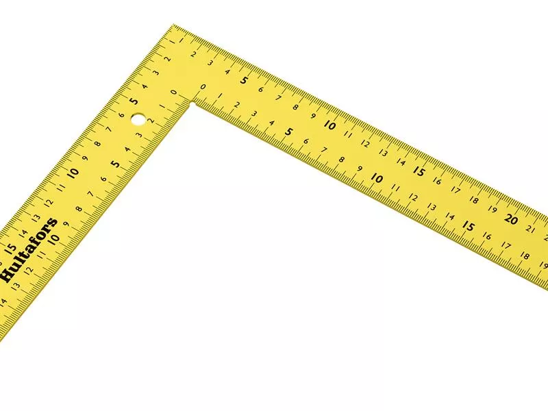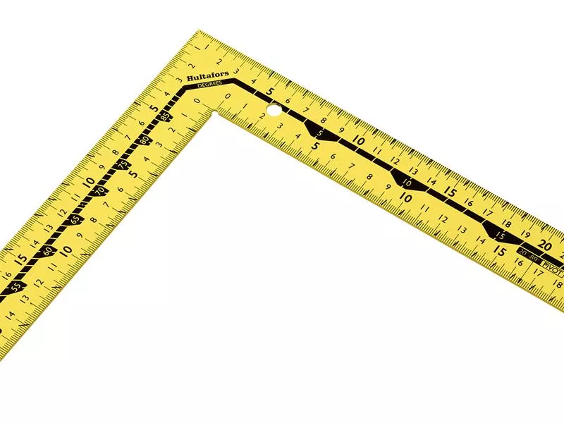 The Hultafors Carpenter's Square is made of 1.5mm thick high-strength steel, cut with precision laser, provides a durable and high precision product. There is a millimetre graduation on the front and back side of the square. There is also an additional angle scale on the backside, with two pivot points, one for 1-20° and one for 20-89°.