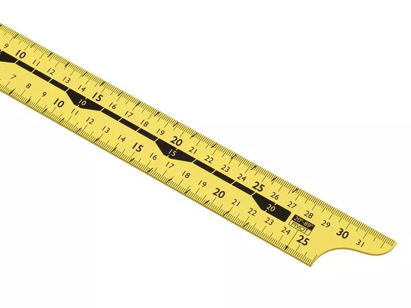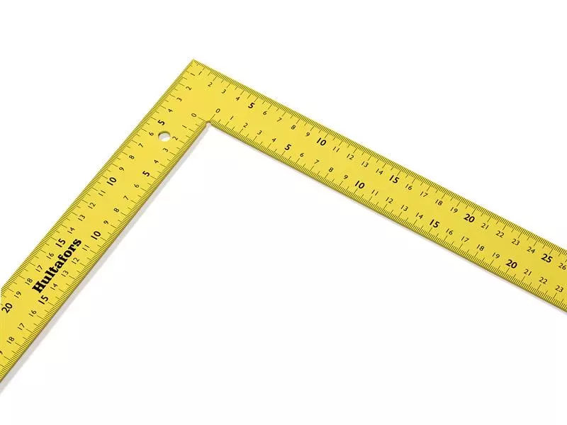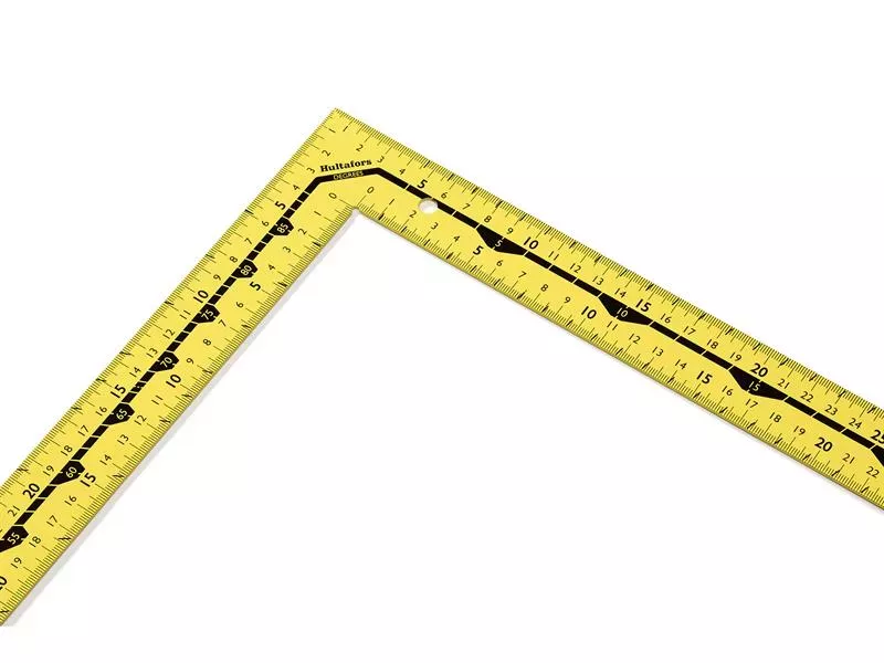 The Hultafors Carpenter's Square is made of 1.5mm thick high-strength steel, cut with precision laser, provides a durable and high precision product. There is a millimetre graduation on the front and back side of the square. There is also an additional angle scale on the backside, with two pivot points, one for 1-20° and one for 20-89°.