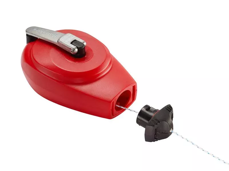 The chalk line has a 30 metre long braided line that produces distinctive lines thanks to its good absorbent properties. They are equipped with a metal crank with a 3:1 ratio and an ergonomic release button that allows you to pull out the line without the crank spinning. The housings are made of robust ABS plastic with a large opening for easy filling and a bayonet cap. The cap is divisible to make it easier to change the line.