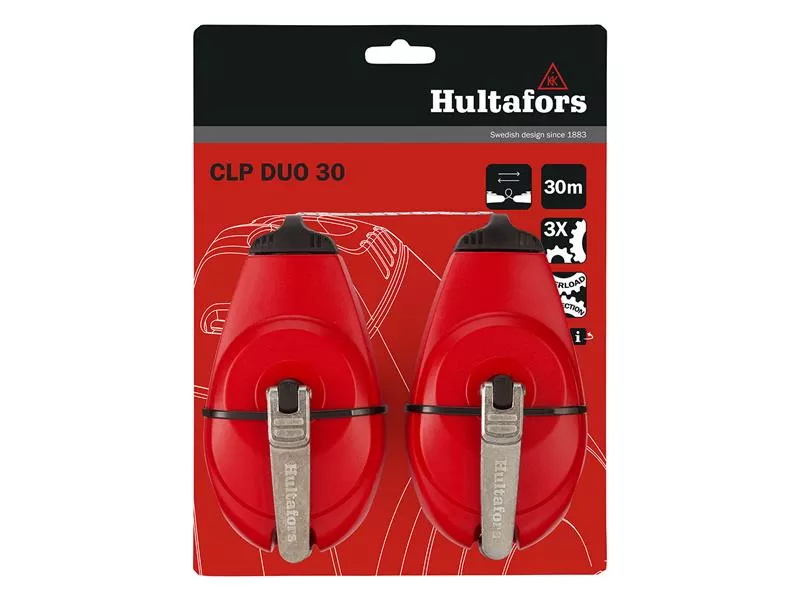 The Hultafors Chalk Line Duo has an innovative design, two housings connected by one line. This makes work safer and more efficient in hard-to-reach places, such as roofs or sky lifts. You don't have to walk or throw back the end hook like on a traditional chalk line reel, instead you can crank the line back and forth between the houses for easy pigment replenishment.