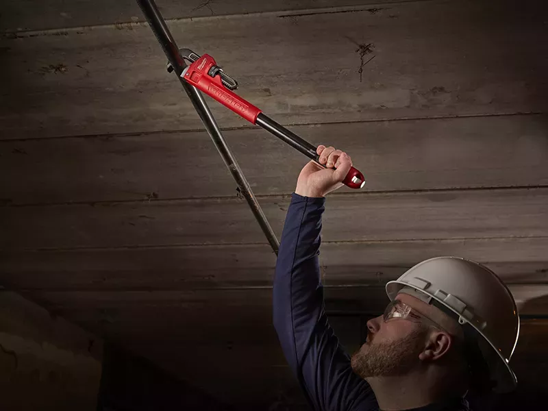 The Milwaukee Hand Tools Cheater - Adaptable Pipe Wrench has 3 different length options: 250mm for tight spaces, 450mm for general purpose jobs and 600mm for maximum leverage and reach. The overbite jaw provides a secure grip on pipes and fittings. It has also been hardened for increased durability and fitted with dual coil springs for maximum tool life.