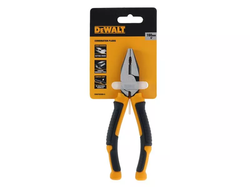DEWALT Combination Pliers feature a laser-hardened cutting edge for maximum strength. With improved hardness depth and high leverage design, these pliers offer increased jaw force (hardness 61±2 HRc and depth is 1.5±0.5mm). The black oxide trim provides extended lifespan.