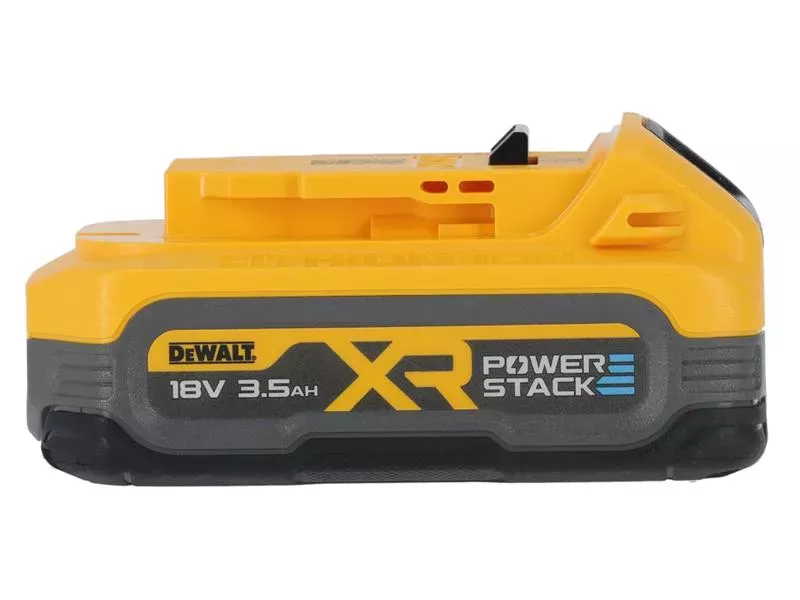 The DEWALT XR POWERSTACK™ Slide Battery features stacked pouch cell battery technology providing a low impedance construction, the rate of flow of electrons is much higher thanks to the innovative internal pouch battery connectors, and electrodes.