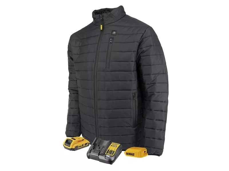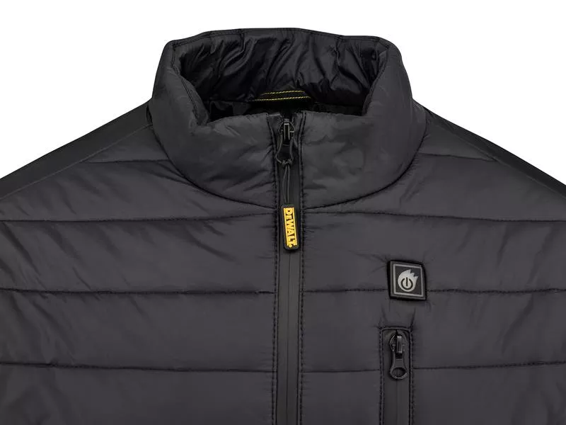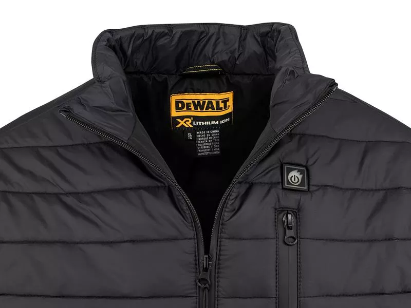 The DEWALT DCHJ093 Heated Lightweight Puffer Jacket provides hours of core body warmth and continuous heat. It features 3 core heating zones and 3 temperature settings. Constructed with heavy-duty materials which stand up to harsh elements. The polyester shell and lining retain warmth and resist moisture. The front zipper closure goes all the way up the stand-up collar for additional warmth.