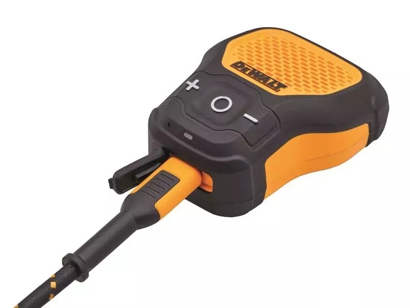 Small but resilient, the Jobsite Pro Wearable Speaker is ultra-compact at under 2 ounces. This lightweight speaker can attach to your apparel and gear with the sturdy “Easy-Open” clip and features a detachable mounting magnet to affix everywhere else.