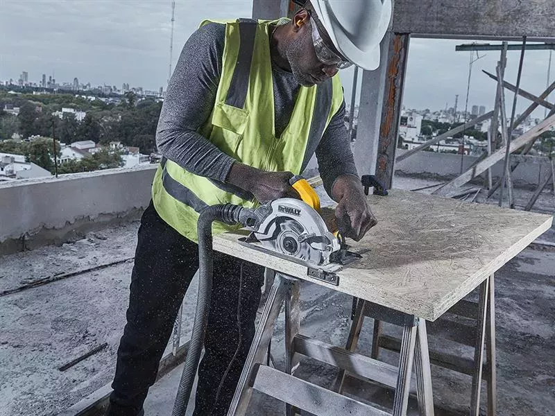 The built-in dust blower clears dust and debris from the cut line for increased accuracy. The saw also features direct compatibility with the airlock system. Ensuring easy and secure connection with DEWALT dust extractors for high dust-extraction efficiency and increased user health protection.