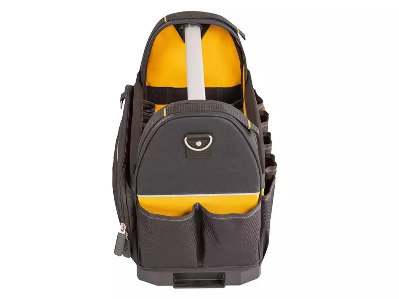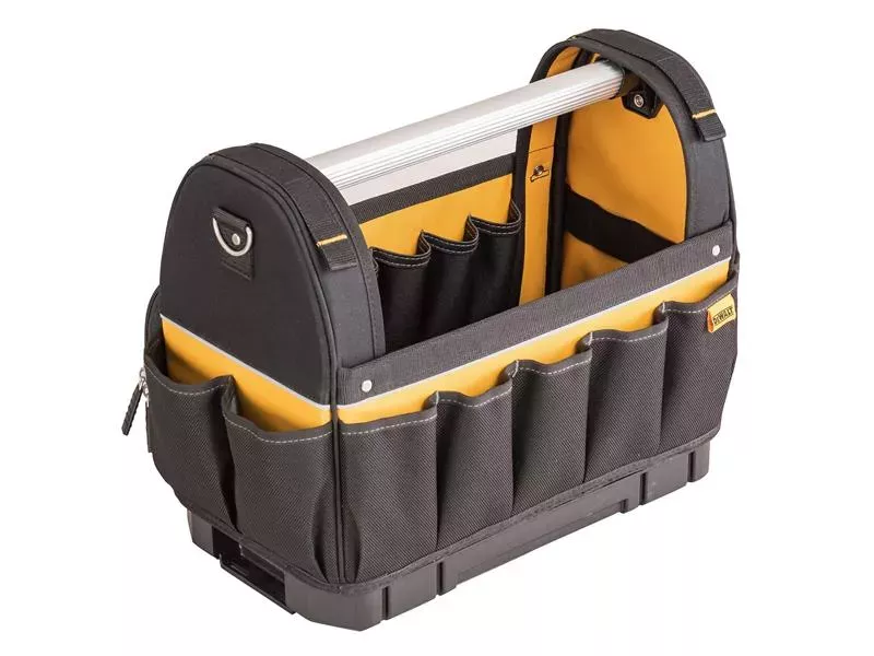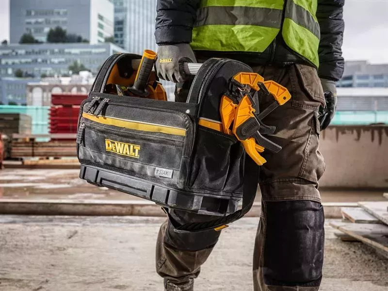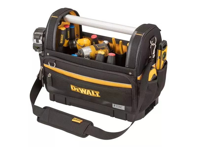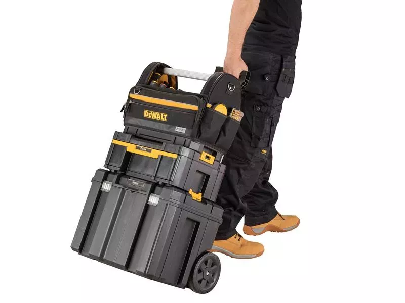 The DEWALT DWST82990-1 TSTAK™ Soft Tote is made from 1200 Denier fabric with a rivet reinforced construction for durability, long life and tear resistance. Fitted with an injected plastic base for increased protection on wet floors. It also features a close zip compartment for storing valuables securely and an aluminium handle for durability and comfort.