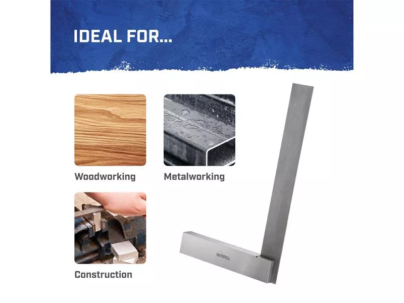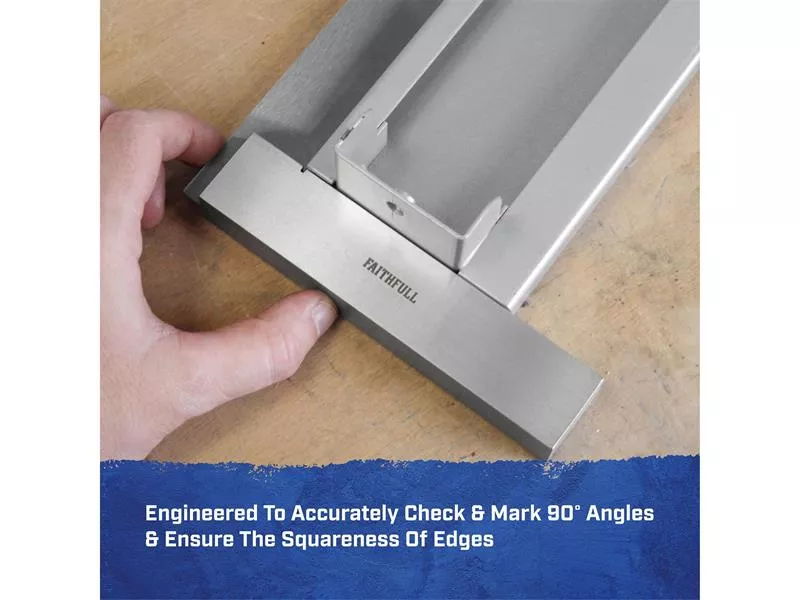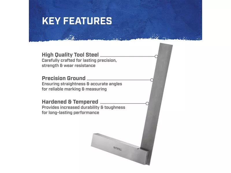 The Faithfull Engineers Square has been carefully crafted from high quality tool steel, these squares are accurate to BS939 Grade B standard. The stock and blade are precision ground to ensure straightness and accuracy, and the spring steel blade is hardened and tempered for increased durability.