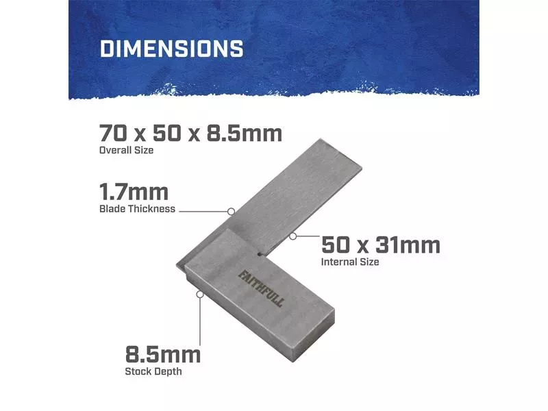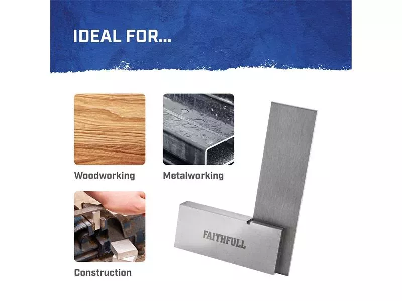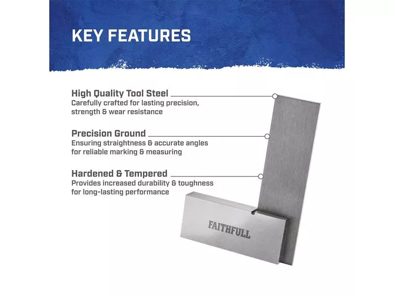 The Faithfull Engineers Square has been carefully crafted from high quality tool steel, these squares are accurate to BS939 Grade B standard. The stock and blade are precision ground to ensure straightness and accuracy, and the spring steel blade is hardened and tempered for increased durability.
