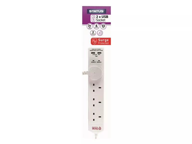 1 x STATUS® Extension Lead 240V 4-Gang + 2 USB 13A 2m White