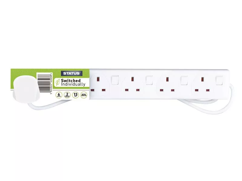 Extension Socket Switched 6 Way 2m White S6W2MINDSS12