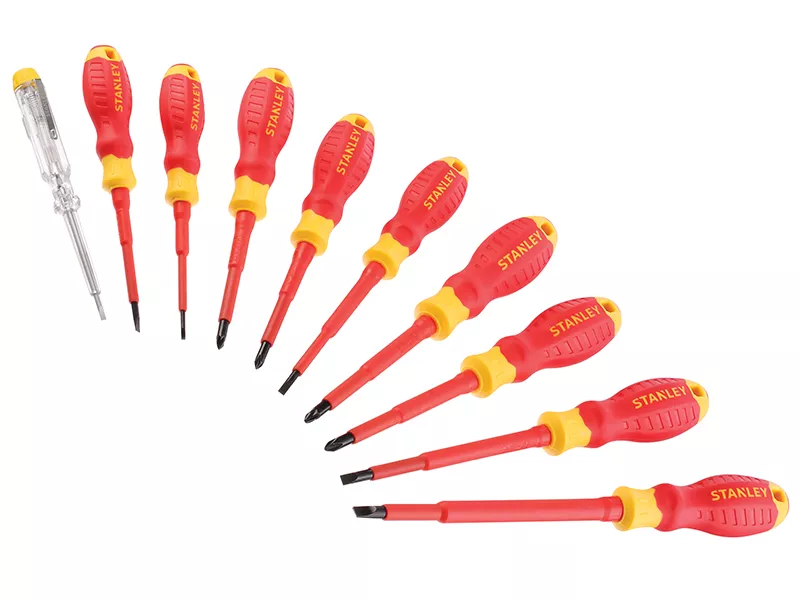 Stanley FatMax® VDE Insulated Screwdrivers feature slim insulation which allows access without modification and safe working to 1,000V. Their tri-material handles with soft grip, provide torque transmission and control. Hardened tips ensure a longer working life.