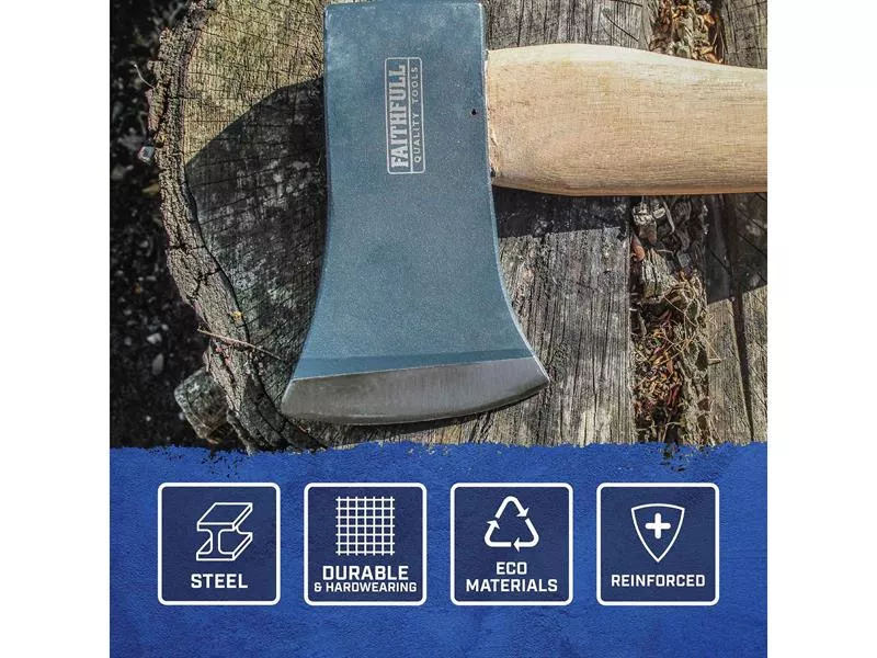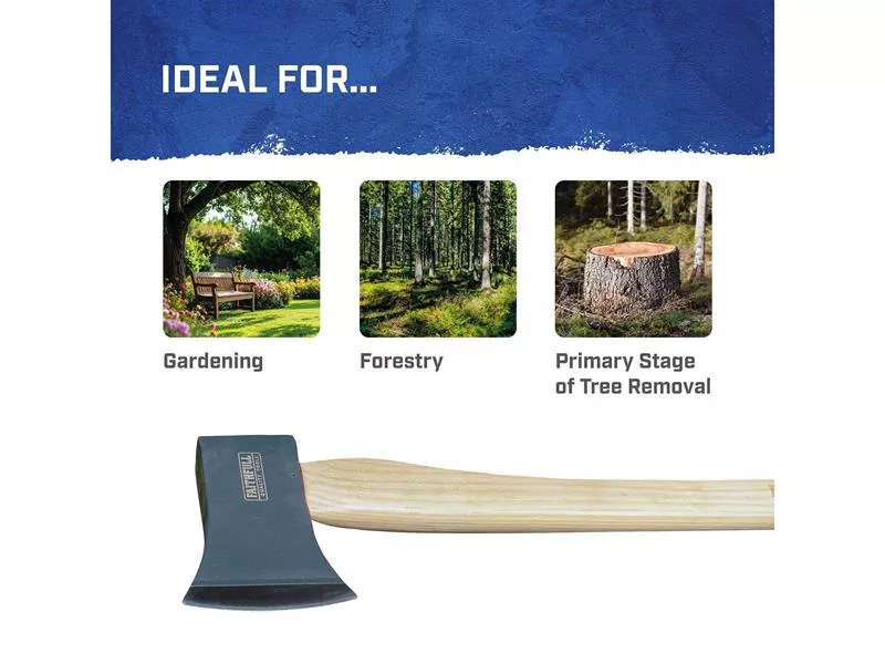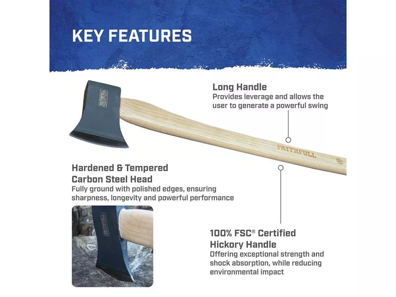 This Faithfull Felling Axe is manufactured from carefully hardened and tempered quality carbon steel, the head is fully ground with a polished cutting edge which is protected by a blade guard. Fitted with a traditional hickory handle which is known for its strength and ability to absorb impact.