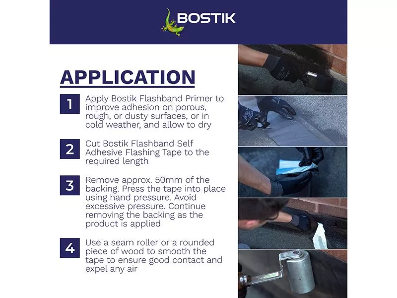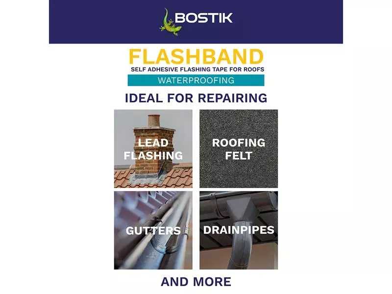 Bostik Flashband & Primer is a self-adhesive flashing strip for roofs, giving an instant watertight seal. Excellent adhesion to a wide range of building materials. Quick and easy-to-use, ideal for emergencies. Includes primer for ease of application.