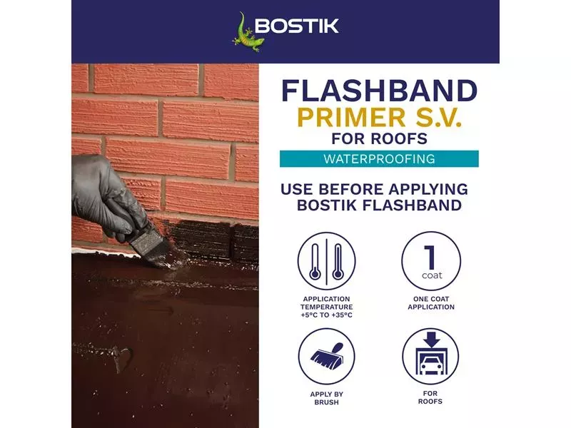 The Evostik Bostik Flashband Primer SV is a solvent-based primer to prepare porous or dusty surfaces. Ideal for use in cold, damp conditions. It has a fast drying, one coat formula and is easy to apply.