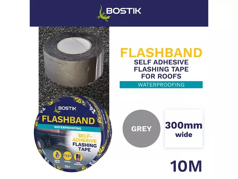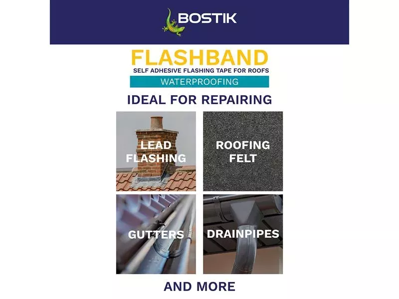 Bostik Flashband is a self-adhesive flashing strip for roofs, giving an instant watertight seal. Excellent adhesion to a wide range of building materials. Quick and easy-to-use, ideal for emergencies.