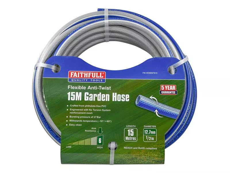 1 x Faithfull Flexible Anti-Twist Hose NTS 15m 12.5mm (1/2in) Diameter