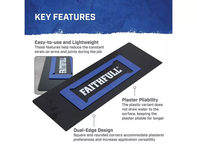 The Faithfull range of Flexi Blades are designed for use in conjunction with the FAIPFLEXMAS Flexi Master Trowel,. The 2mm thick plastic blades are the only Flexifit blades that do not feature the 10mm foam backing and offer a more traditional approach to plastering and rendering.