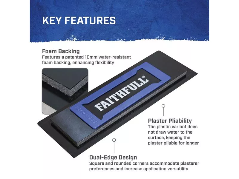 These 1mm thick plastic blades are fitted to a unique 10mm foam backing that offers great flexibility when applying pressure to either walls or ceilings during any stage of plastering.