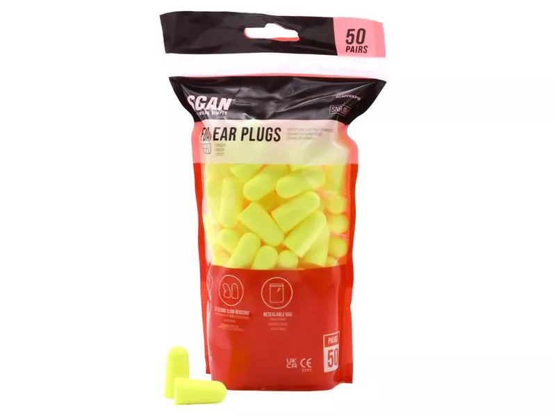 Scan Foam Ear Plugs are made from soft energy absorbing polymer foam, which compresses and then expands for a perfect fit in the ear canal. Reduces sound levels to the ear drum while maintaining aural contact. Resealable storage bag of 50 pairs of ear plugs SNR 38dB - Simplified Noise Level Reduction (SNR) = The number of decibels by which the product reduces audible noise.