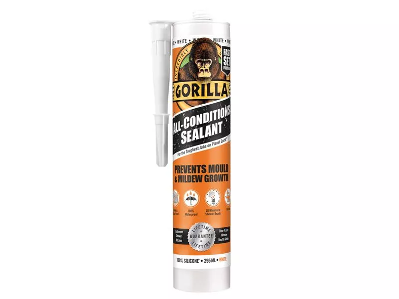 Gorilla All Condition Sealant is a multi-use sealant that’s ideal for all around the home, indoors and out. This sealant is mould and mildew resistant, flexible, and won’t yellow, shrink or crack over time. Plus it's 100% waterproof and can be exposed to shower water or rain in just 30 minutes.