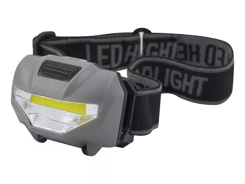 A compact Uni-Com Head Torch - ideal for DIY, camping, sporting activities and general use around the home. Powerful 3W COB LED with tiltable head to adjust the angle of the bright beam. Adjustable head strap for a comfortable fit when working or during leisure activities. 3 light settings – high power, low power, flashing. Powered by 3 x AAA batteries which are included.