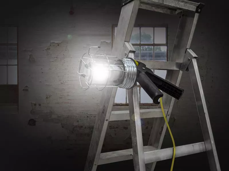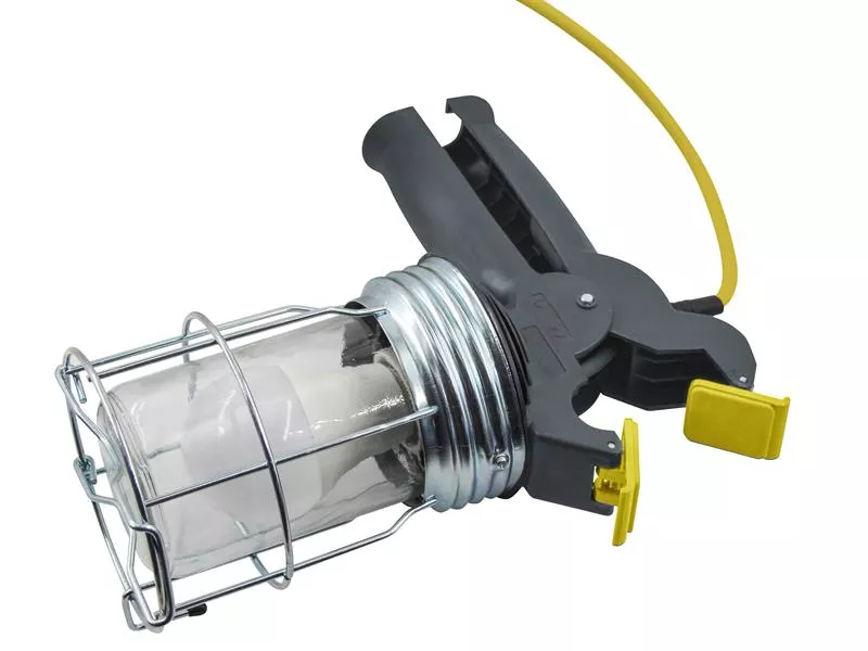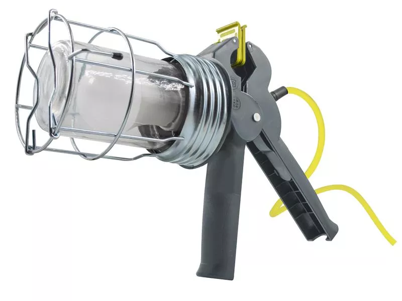 Equipped with strong hand grips, this lamp is easy to handle and position, providing convenience and flexibility. A useful hanging hook is included for easy storage and quick access, and the bulb is encased in a protective wire cage, safeguarding it from accidental damage.