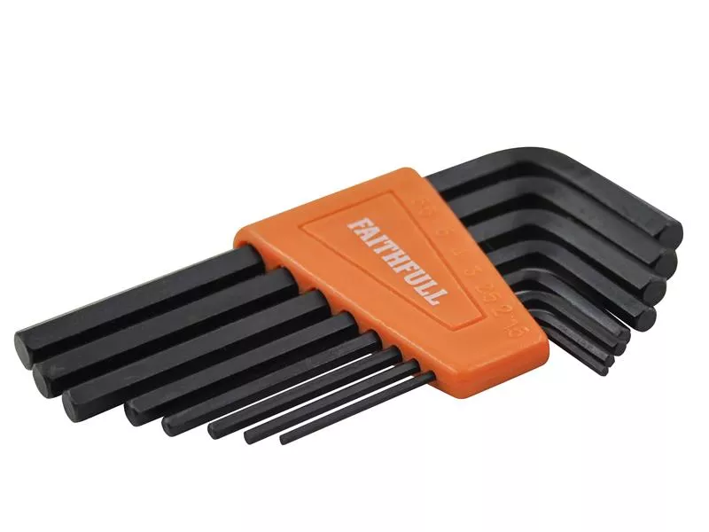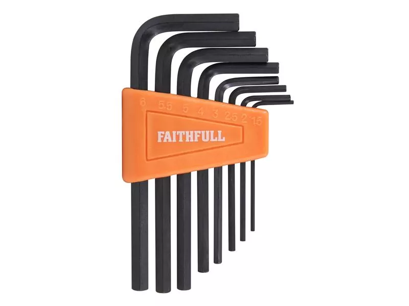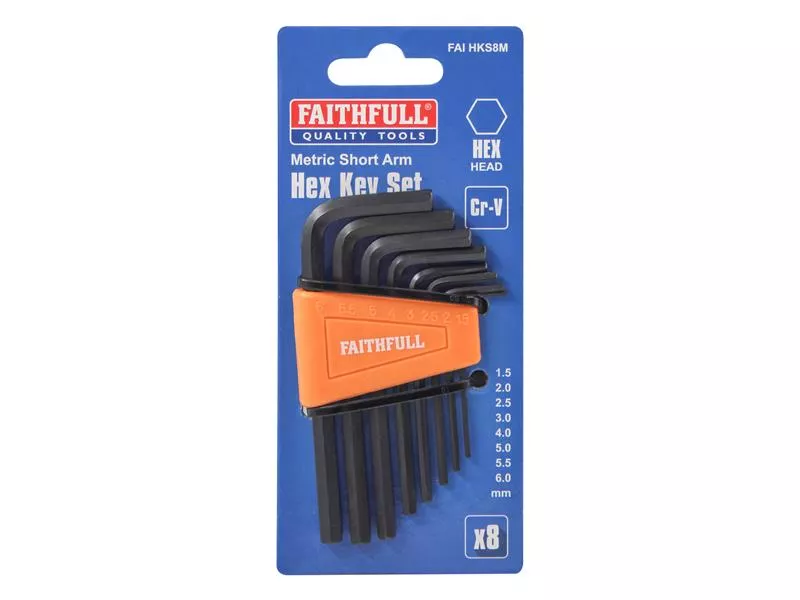 This Faithfull Short Arm Hex Key Set contains a selection of professional quality keys made from fully hardened chrome vanadium steel. All keys from 4mm have chamfered edges to prevent damage to blade and fittings.