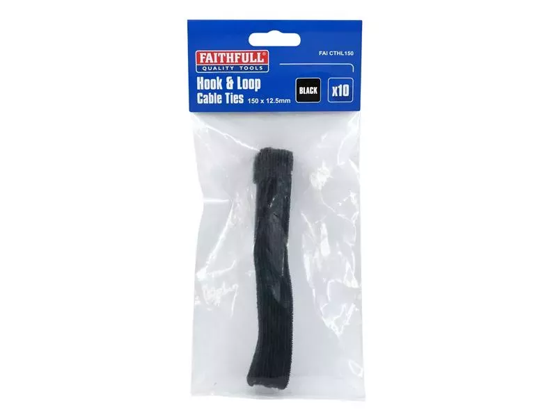 Faithfull Hook & Loop Cable Ties are ideal for managing cables, securing equipment, and organizing workspaces across a wide range of industries. Each tie measures 12.5 x 150mm and is made from high-quality nylon and polypropylene, delivering excellent strength and flexibility. With an operational temperature range of -20°C to +120°C, these ties perform reliably in demanding environments, including underwater use, where tensile strength temporarily reduces by 50% but fully recovers once dry. Engineered for performance, they offer a transverse pull force of 16KGF and a 180-degree peel strength of 3N.