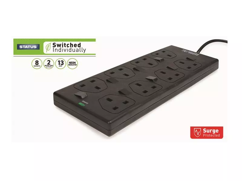 STATUS® Individually Switched Extension Lead with a neon indicator for added safety. Surged protected, designed to protect your electrical appliances from power surges and spikes. Ideal for indoor power applications. Made with high-quality materials for reliable performance and safety.