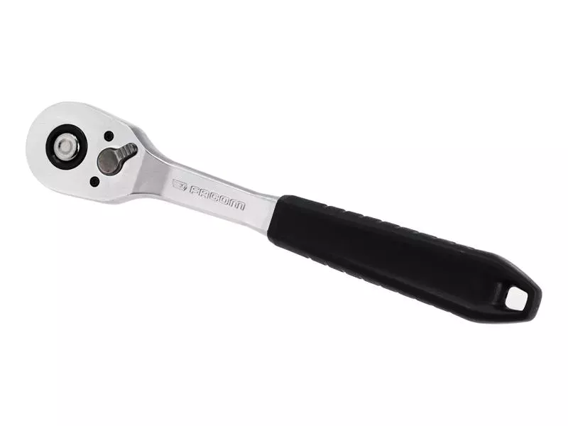 The Facom JL.151 Slim Pear Head Ratchet has a low-profile head for better access in confined spaces. Its 72-tooth mechanism allows for a 5° ratcheting arc. Fitted with an ergonomic handle for comfort and a secure grip. The matte chrome finish provides increased corrosion resistance.