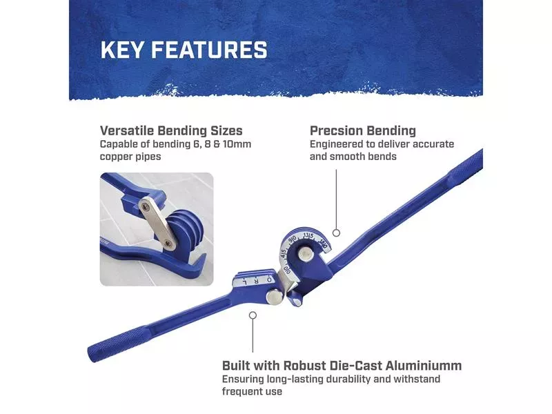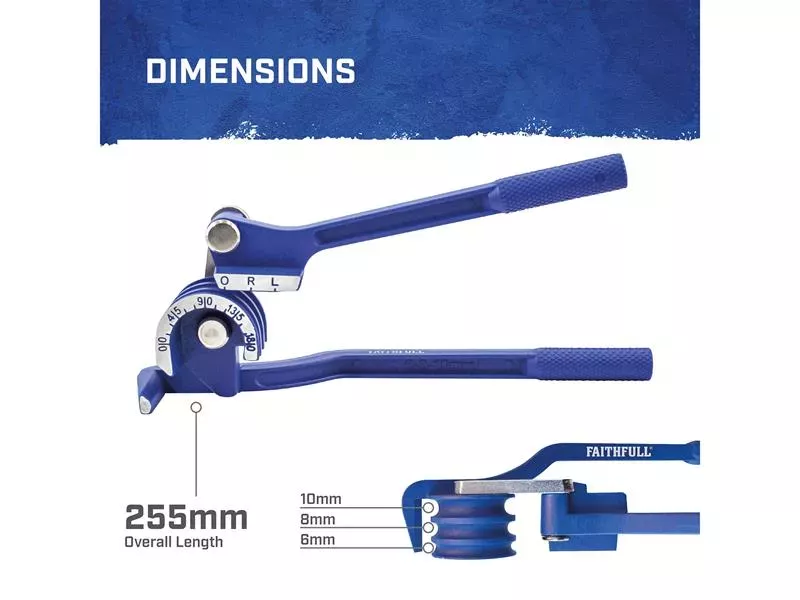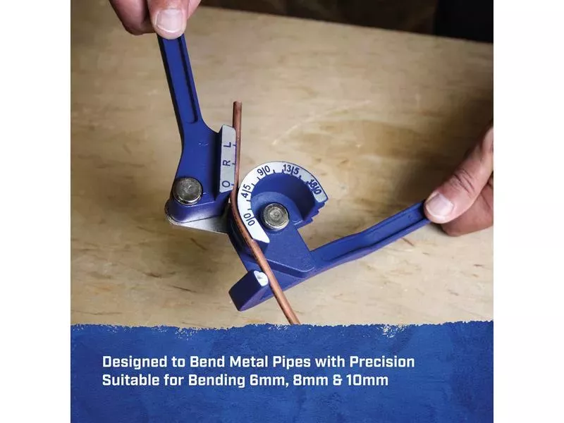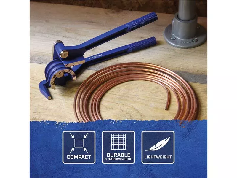 The Faithfull Mini Bender easily bends copper pipes with precision. Designed to handle 6mm, 8mm, and 10mm pipes, this compact tool is perfect for both professional and DIY applications. Made from high-quality die-cast aluminium, it ensures durability and reliable performance for all your pipe bending needs.