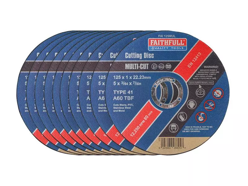 Pack of 10 Faithfull Multi-Purpose Cutting Disc 125 x 1.0 x 22.23mm