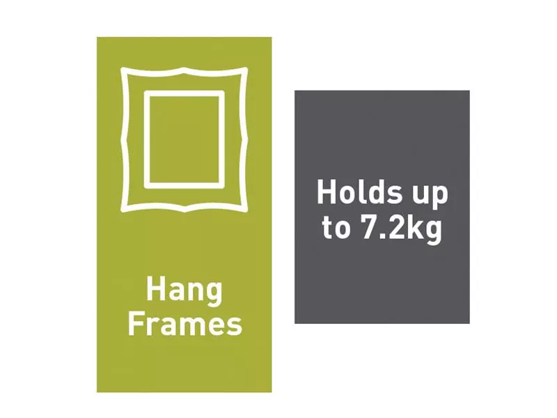 Large picture hanging strips hold most frames up to 60 x 90cm.